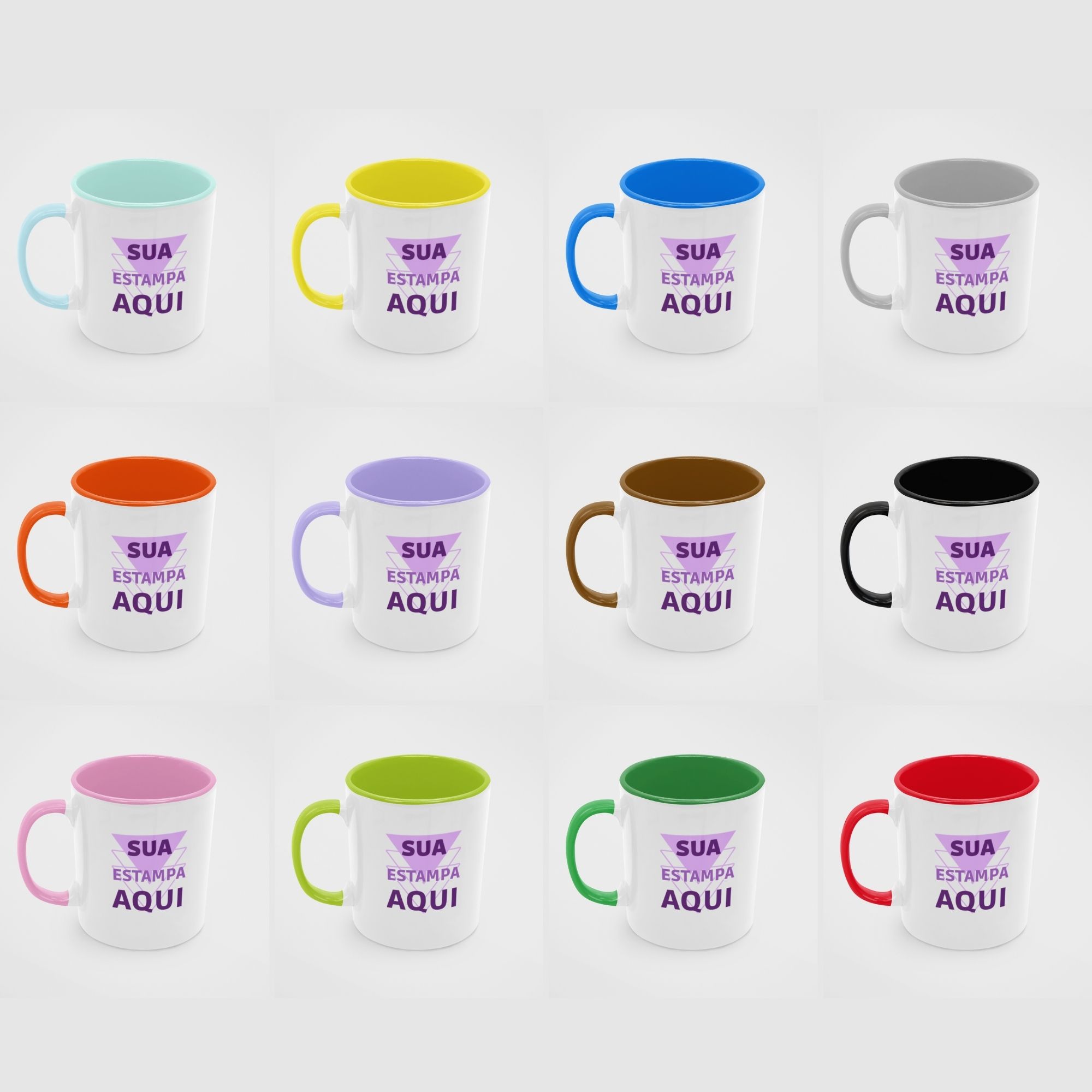 Caneca Cerâmica Personalizada Alça e Interior Colorido 325mL